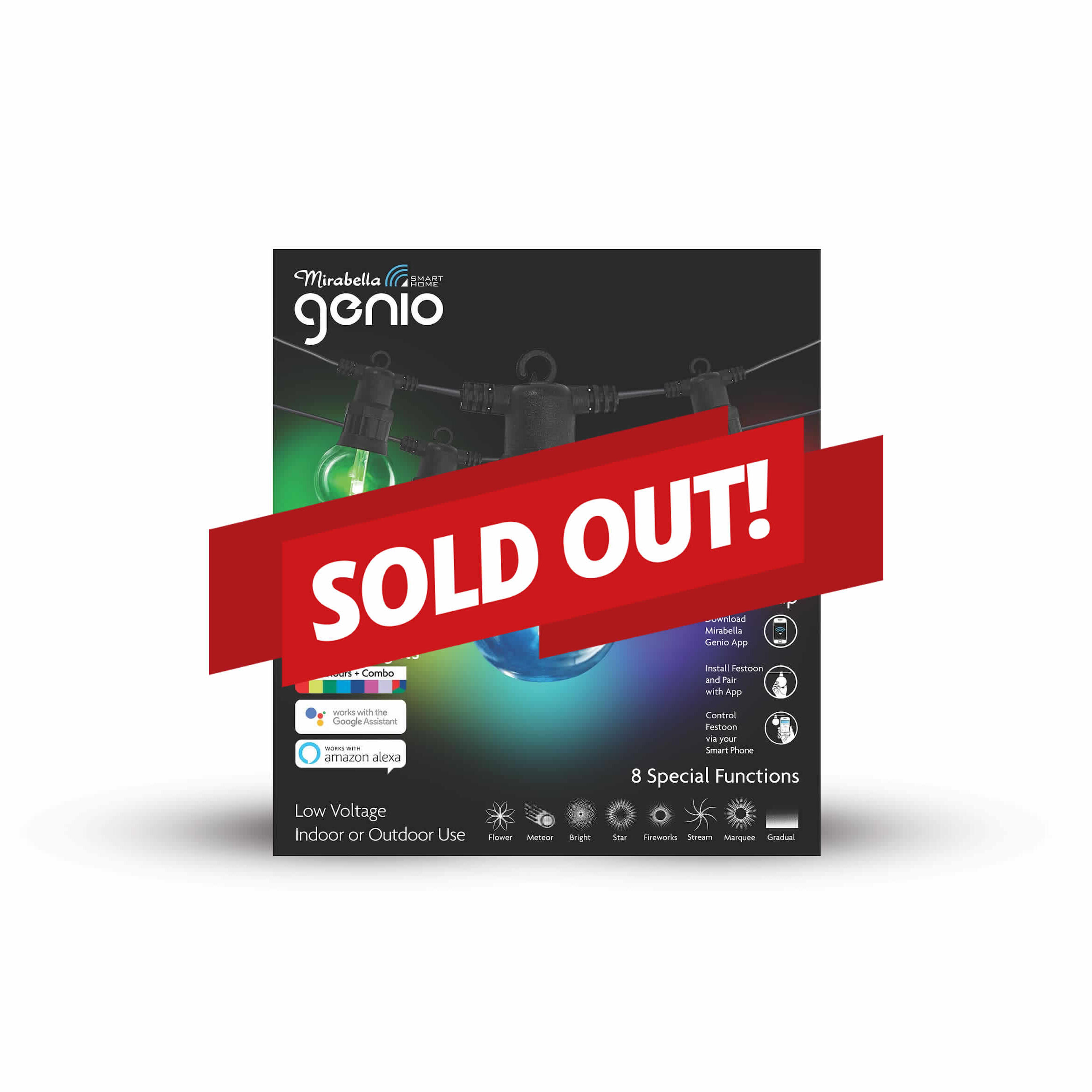 Add some ambient lighting to your outdoor space with this Mirabella Genio smart LED powered, Wi-Fi enabled Black Spot Light Kit. These multifunction lights are controllable with the Mirabella Genio App on your Smart Phone. Mirabella Genio App available from the App Store or Google Play. Works with Google Home & Amazon Alexa.