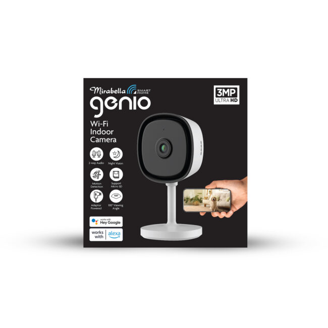 Improve your home security or keep an eye on your pet when at work with this Wi-Fi enabled indoor camera. The Anko indoor camera is controllable with the Mirabella Genio App on your Smart Phone. Mirabella Genio App available from the App Store or Google Play. Works with Google Home & Amazon Alexa.