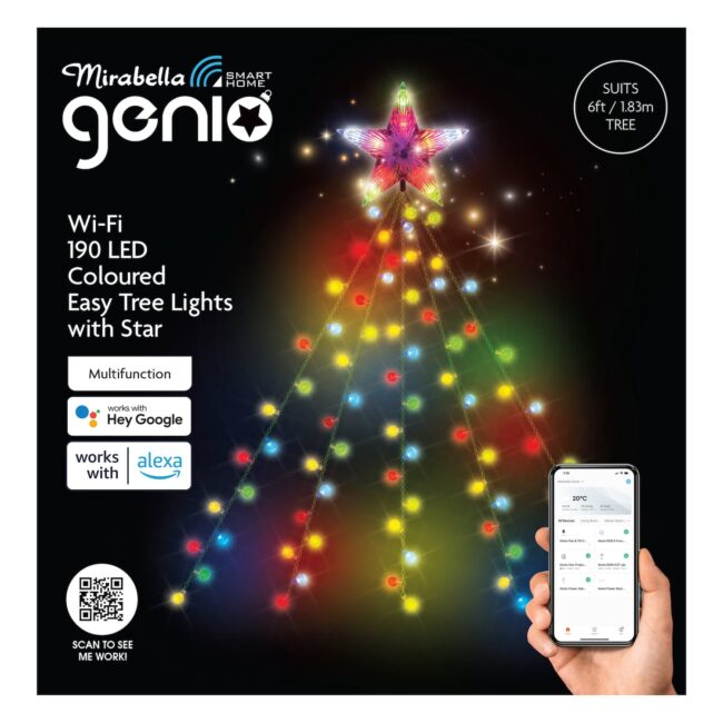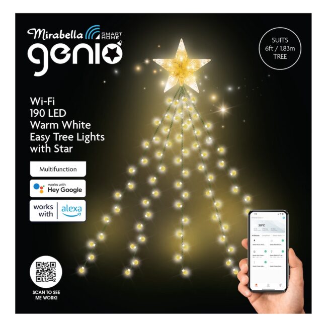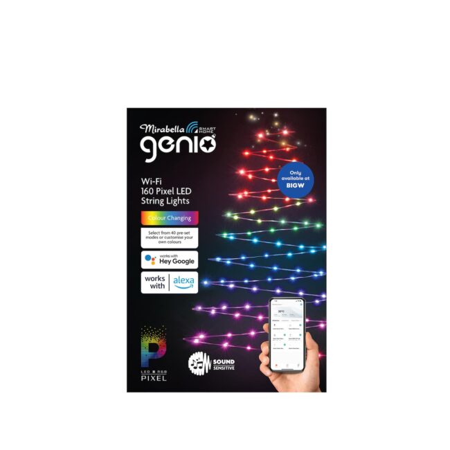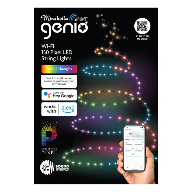 Decorate your home this festive season the smart way, with the Mirabella Genio Wi-Fi RGB Pixel LED String Lights. These addressable LED lights are controllable from the palm of your hand, with the Mirabella Genio App on your smartphone. Whether used inside or outdoors, choose from various pre-set modes or customise your own colours, to create a dynamic Christmas light-show display. The Mirabella Genio App available from the App Store or Google Play.